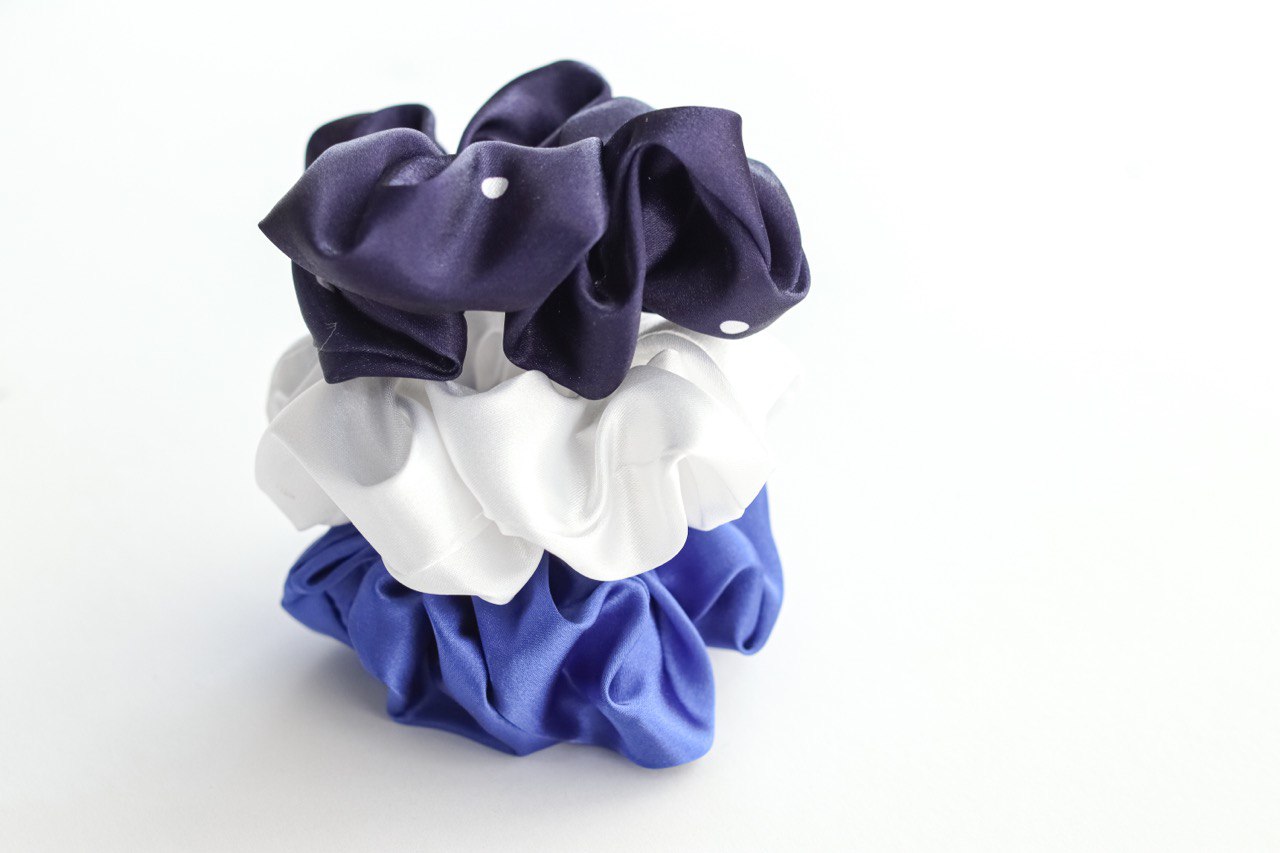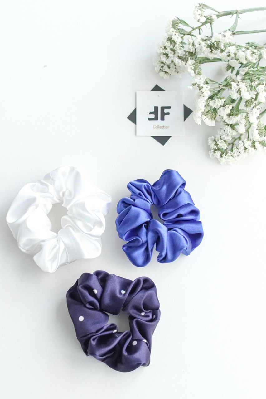 ست اسکرانچی ساتن الیکس آبی _ سورمه ای