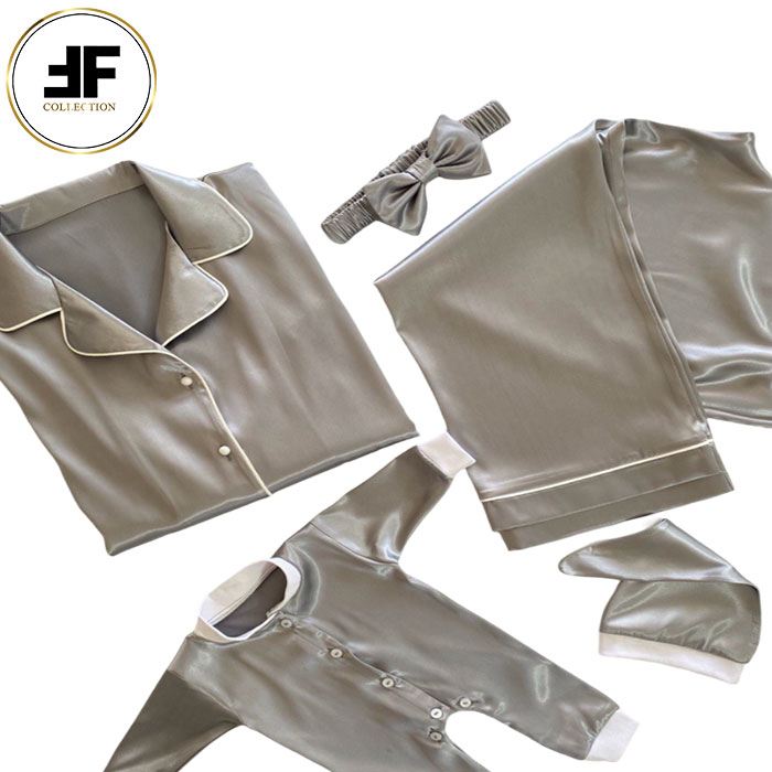 ست لباس خواب مادر و کودک طرح ساده طوسی